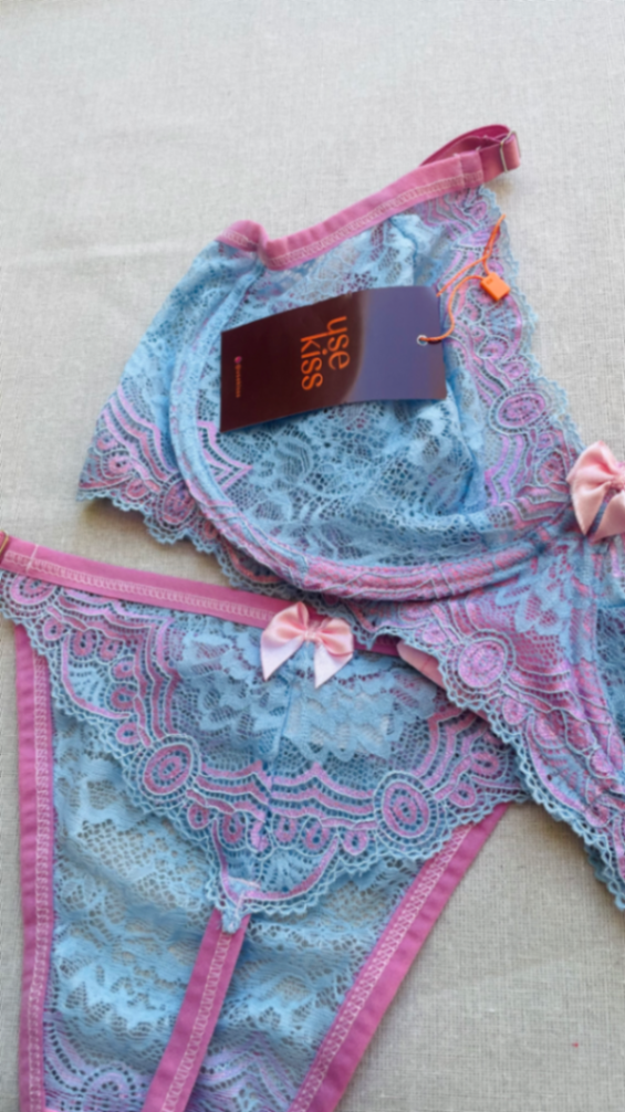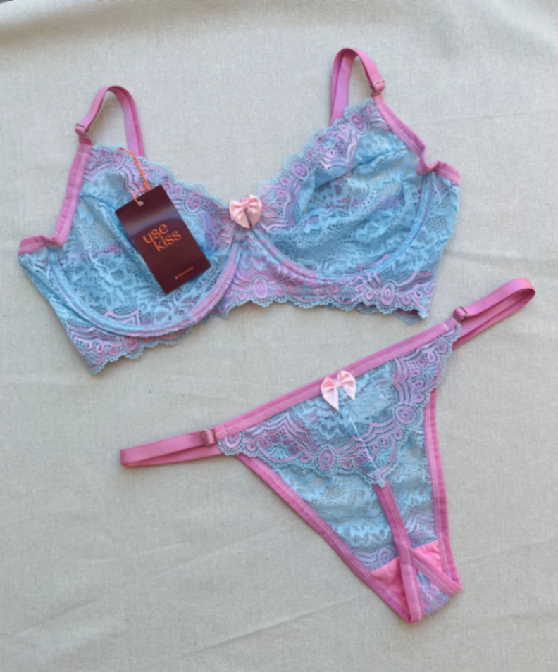 Lingerie Ana - Azul e Rosa | Tam. (48-50)